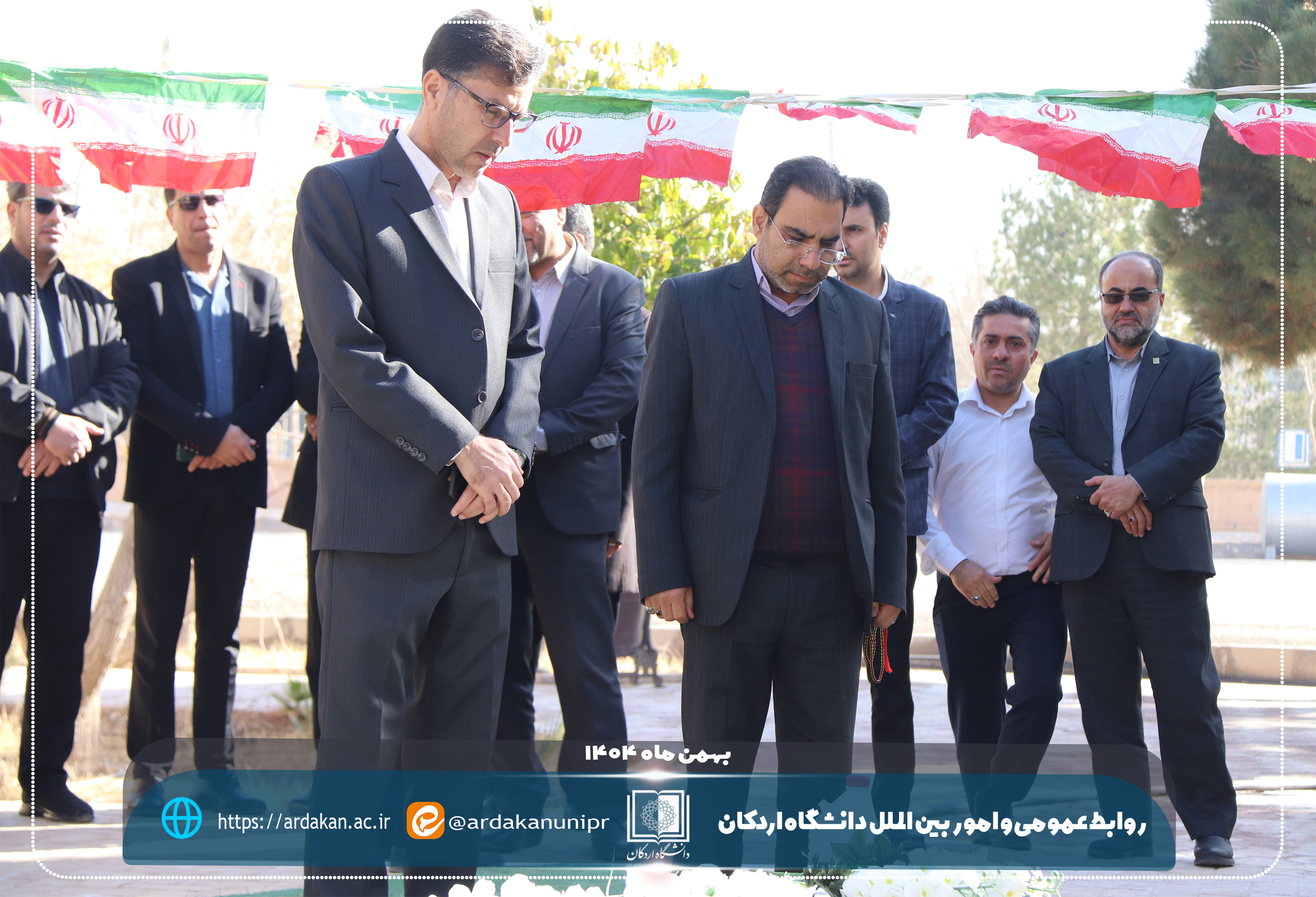 به گزارش روابط عمومی و امور بینالملل دانشگاه اردکان، در این مراسم ابتدا مرقد مطهر شهید گمنام دانشگاه با گلاب شستوشو داده شد و سپس با اهدای گل گلباران شد.